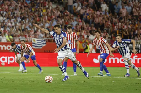 Lang leek AZ de rust te halen met de voorsprong op zak, maar daar kwam vlak voor het eindsignaal voor de eerste helft verandering in. Stijn Wuytens bracht Partizan-spits Umar Sadiq, voorheen speler van NAC Breda, ten val en de bal ging op de stip. Bibras Natcho schoot raak en zorgde voor een ruststand van 1-1.