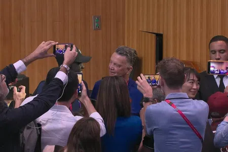 Vertederde Van Gaal knuffelt met jonge verslaggever